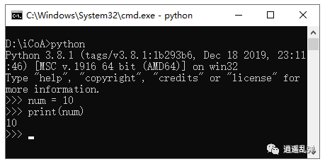 运行结果如下图,其中赋值给变量 num 的是数字型的数据 10,所以没有带引号: